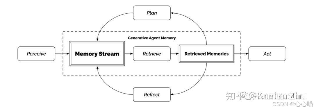 个人认为斯坦福的Generative Agents (Joon Sung Park et al.) 的工作对Memory这块进行了相对不错的探索和设计,由于agent在每次模拟中会产生大量的文本,所以作者使用了一个抽取(Retrieve) 模块去获取对当前执行相对更有用的内容,并且使用模型不断去**反馈(Reflect)**优化更改之前的记忆。