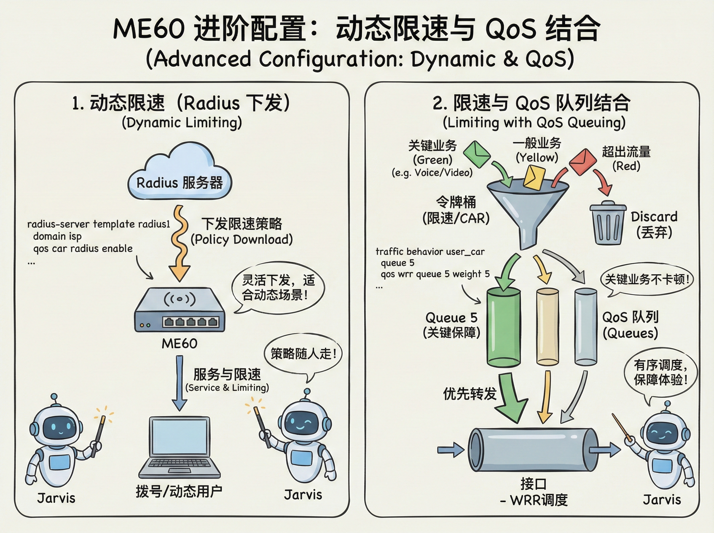 - 把静态限速配置在接入层交换机(比如华为S5735),ME60只做核心转发