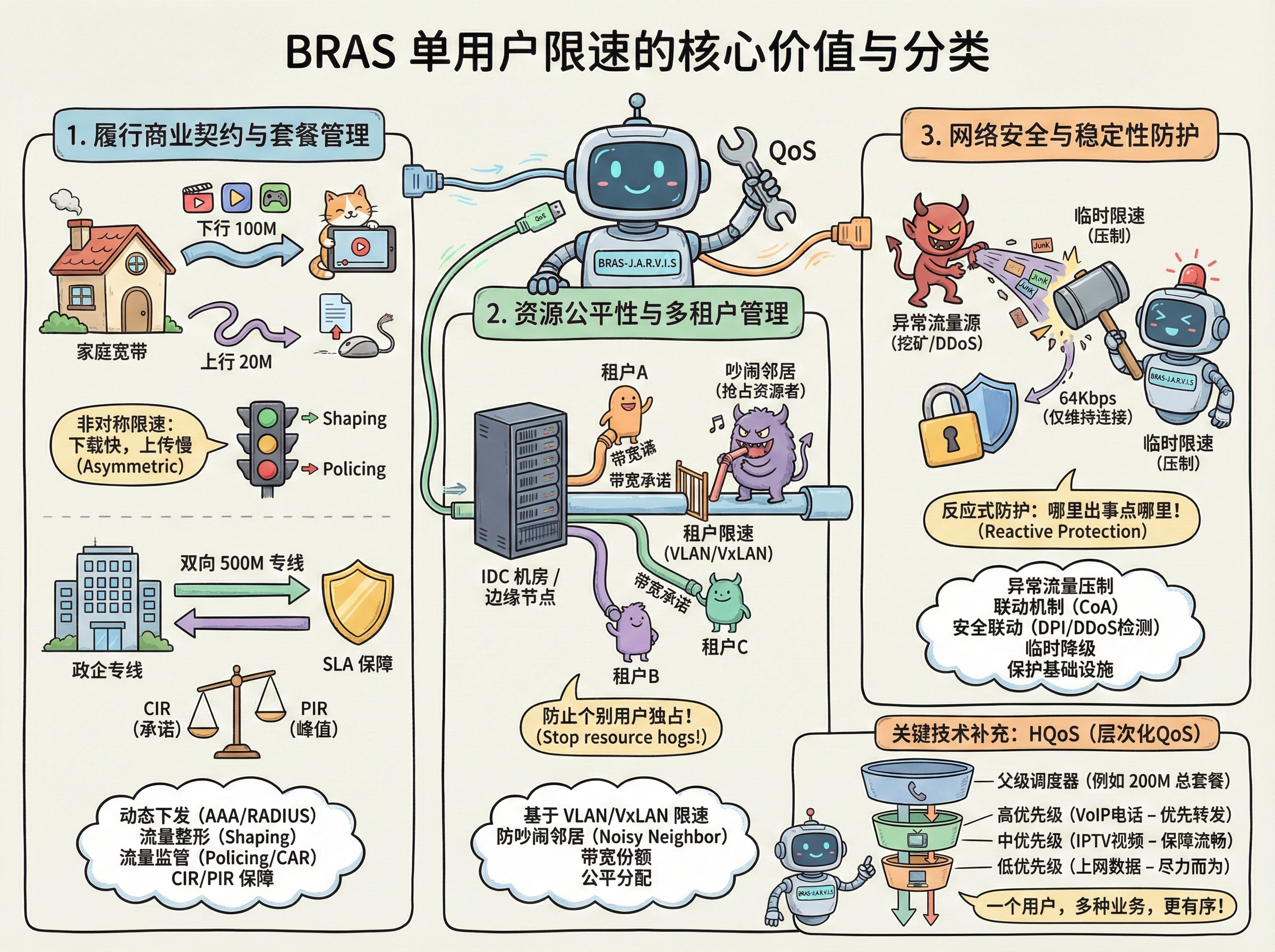 运营商BRAS场景下,单用户限速主要用在这几个地方: