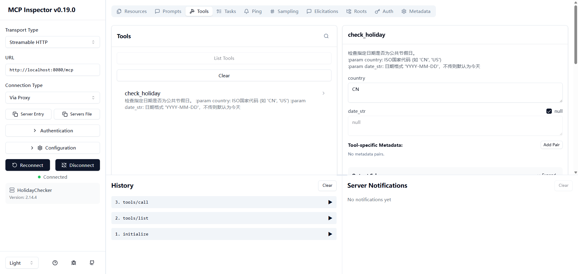 首先编写mcp服务逻辑如下,实现一个查询是否为节假日的服务