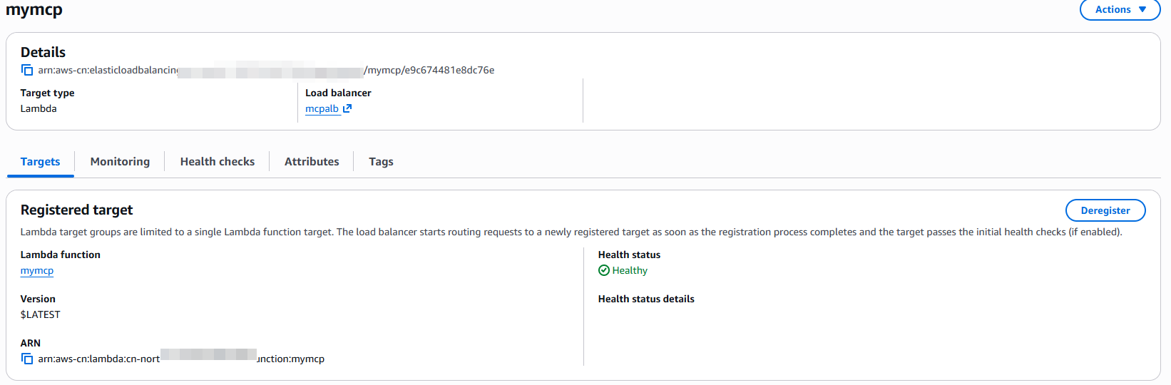 构建镜像并推送到ECR仓库随后部署lambda函数。通过alb将lambda暴露出来,这里lambda不需要配置vpc。
