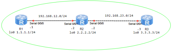 Huawei\]sysname R1 \[R1\]interface s0/0/0 \[R1-Serial0/0/0\]ip address 192.168.12.1 24 \[R1-Serial0/0/0\]undo shutdown \[R1-Serial0/0/0\]quit \[R1\]interface LoopBack 0 \[R1-LoopBack0\]ip address 1.1.1.1 24 \[R1-LoopBack0\]quit