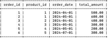 INSERT INTO order_info (order_id, product_id, order_date, total_amount)