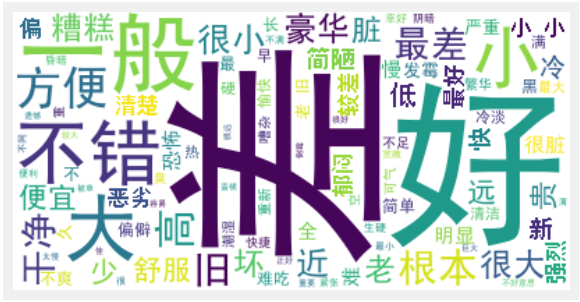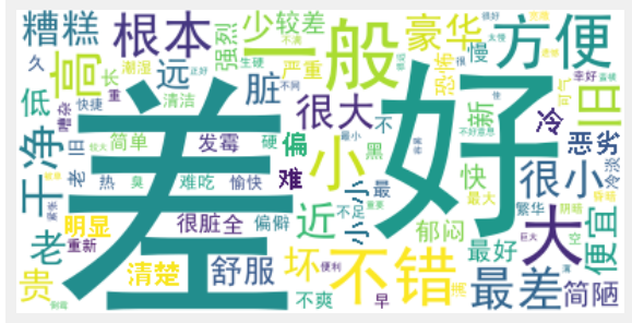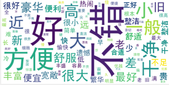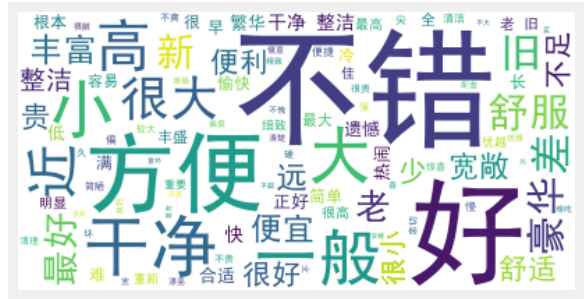 学习了基于真实的中文酒店评论语料进行几种文本数据分析方法. * 获得训练集和验证集的标签数量分布 * 获取训练集和验证集的句子长度分布 * 获取训练集和验证集的正负样本长度散点分布 * 获得训练集与验证集不同词汇总数统计 * 获得训练集上正负的样本的高频形容词词云