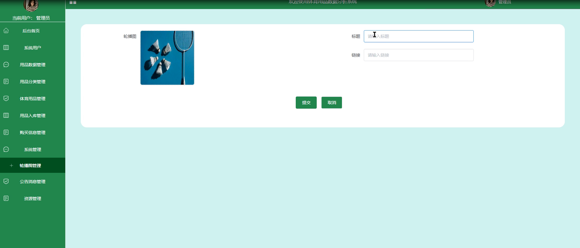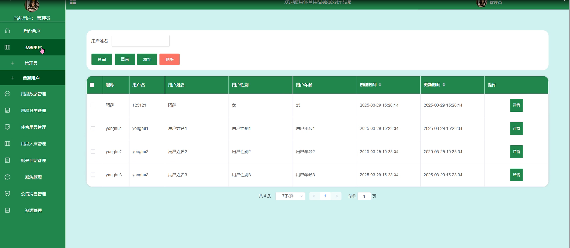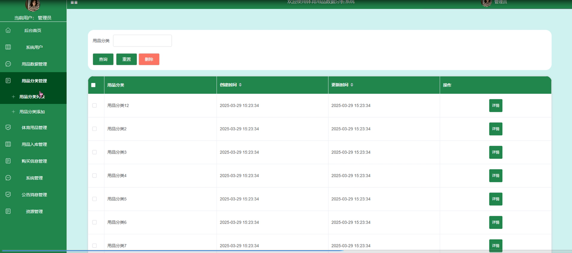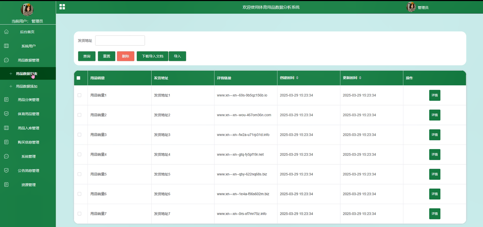管理员主要负责体育用品平台的数据管理、用户管理、订单处理、新闻发布、系统设置以及数据分析等功能,确保系统的顺利运行与高效管理。主要功能包括: