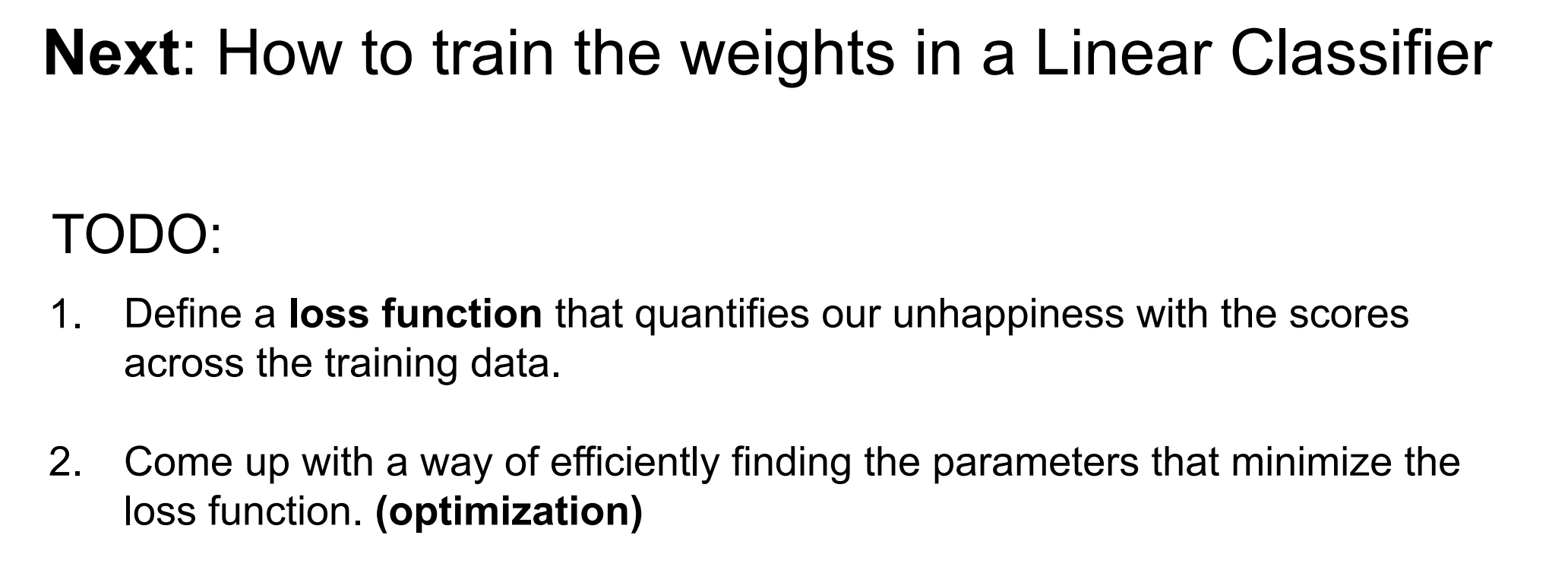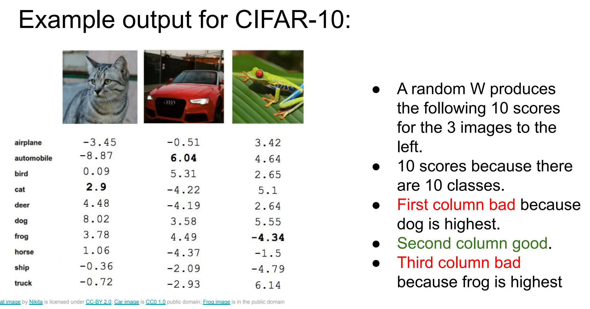训练的目标,就是调整 W ,让 正确类别的 score 永远比其他类别高