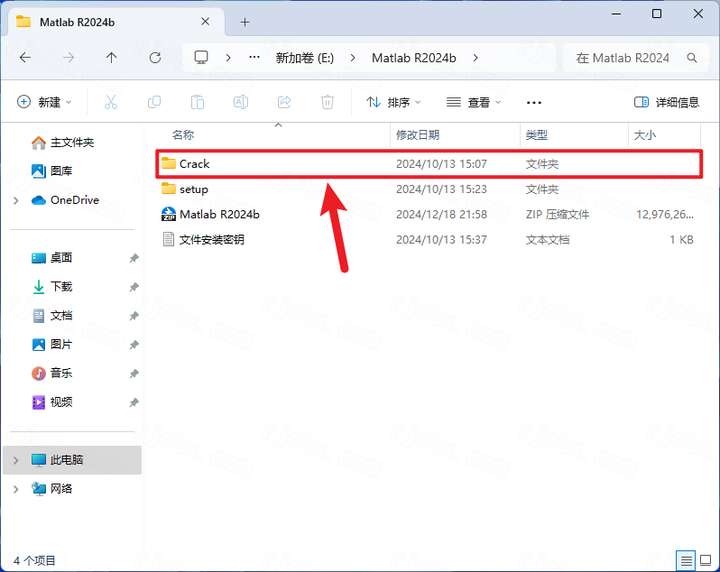 16.返回开始解压出来的【Matlab R2024b】文件夹,打开【Crack】文件夹