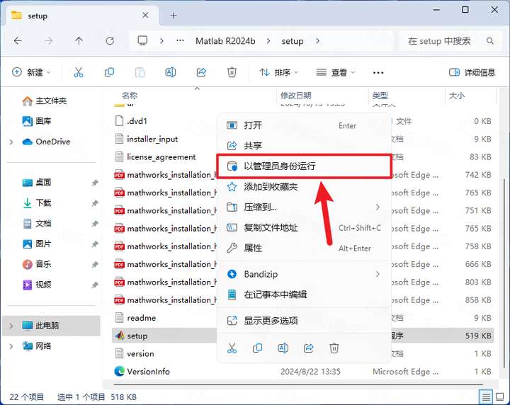 3.鼠标右击【setup】,选择【以管理员身份运行】