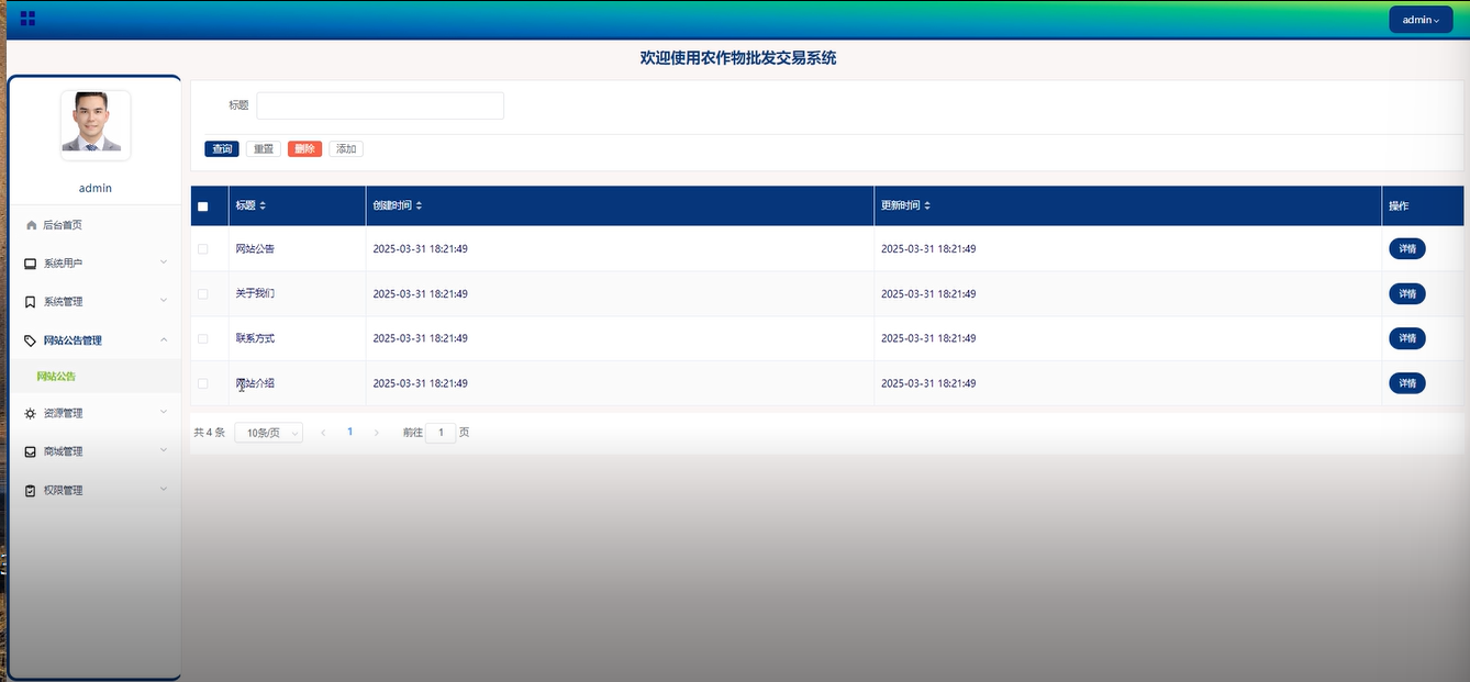 管理员可以发布和管理网站公告,确保用户及时获取网站的最新动态和重要通知。界面如下图所示。