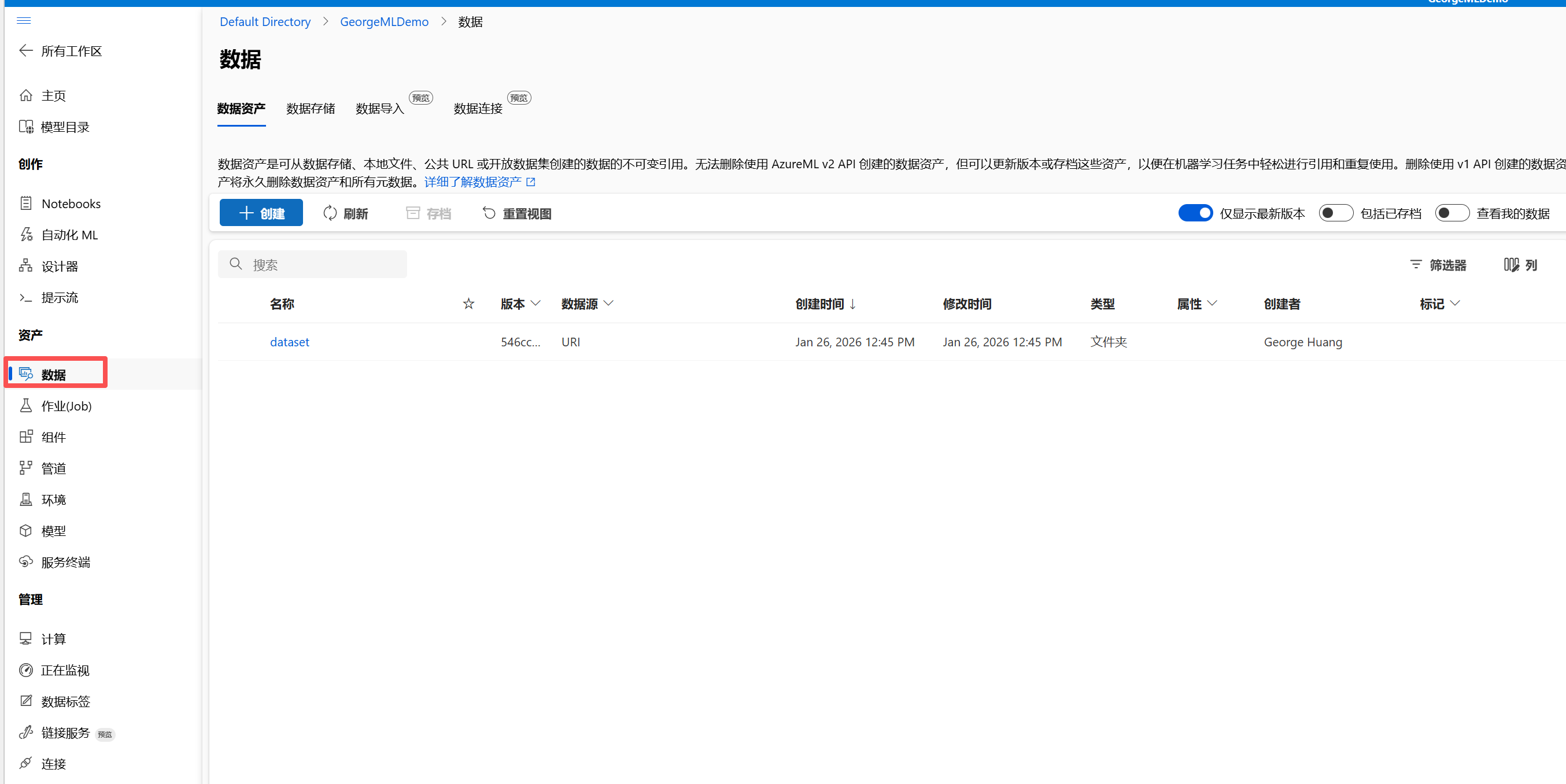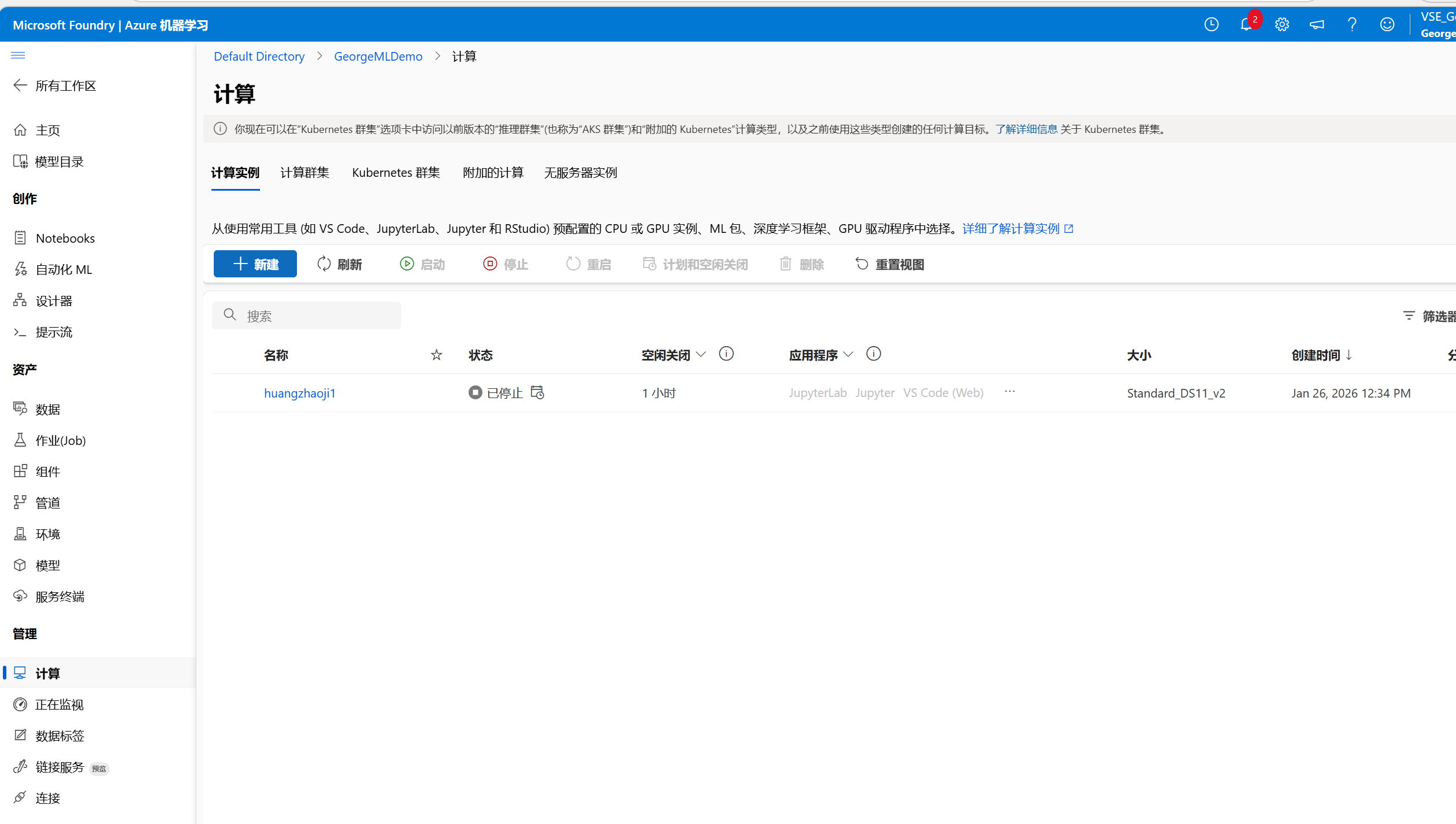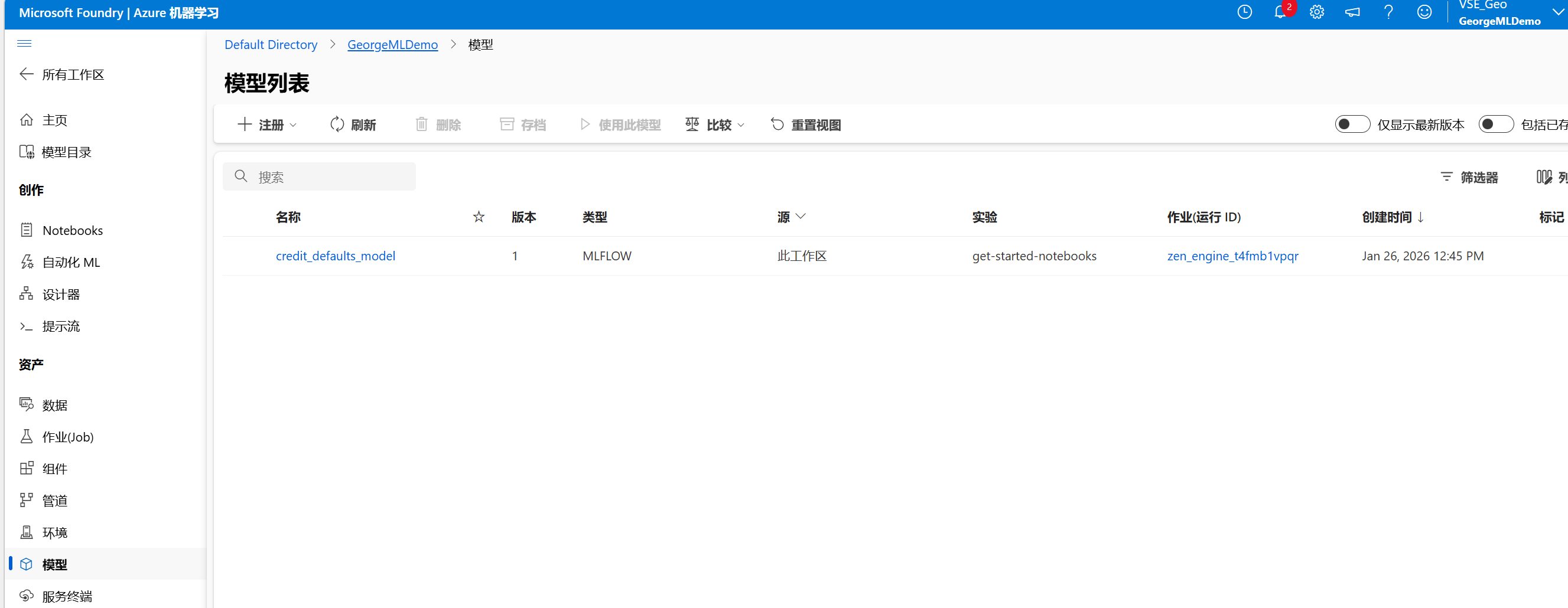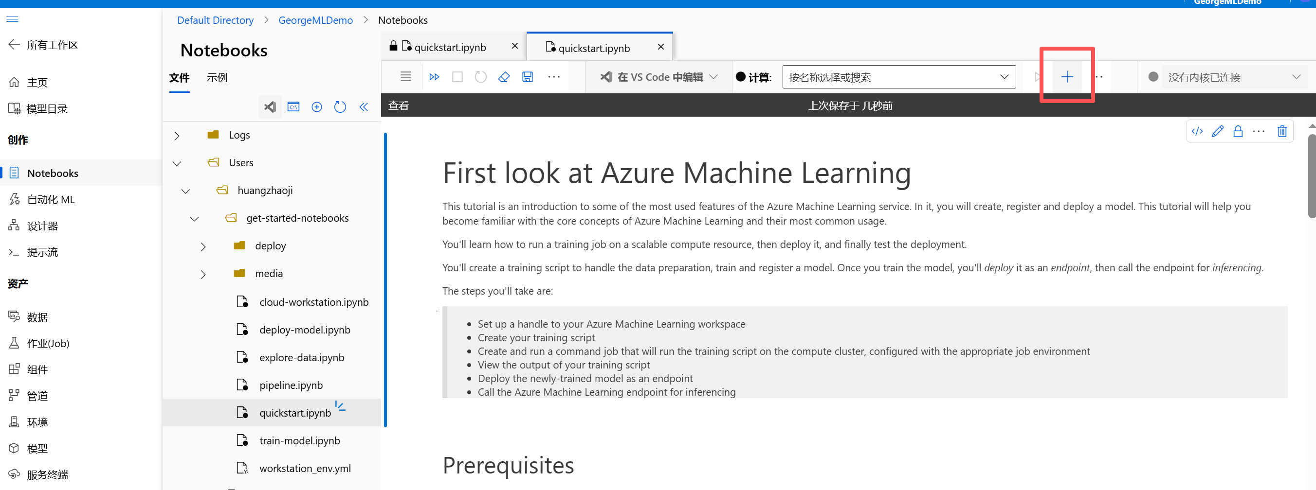 - 工作区:这是你进行实验、训练模型和部署服务的主要区域。