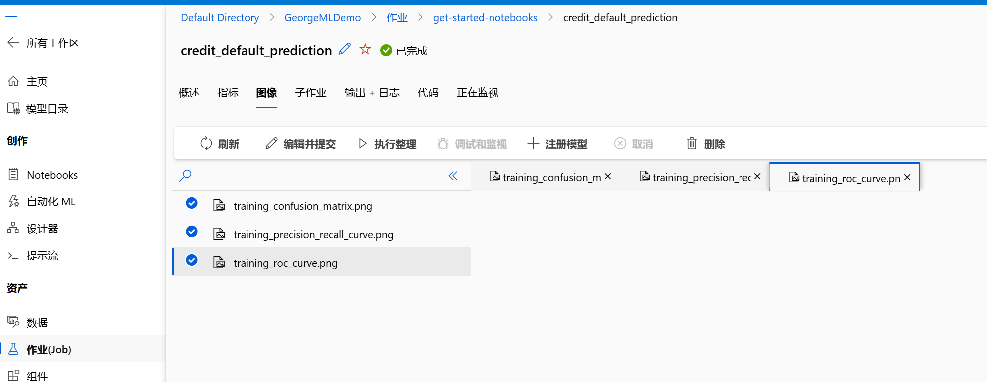 - 作业(Job):在训练模型后,你可以通过"作业(Job)"来查看训练过程和结果。这里可以找到模型的性能指标,帮助你评估模型的优劣。