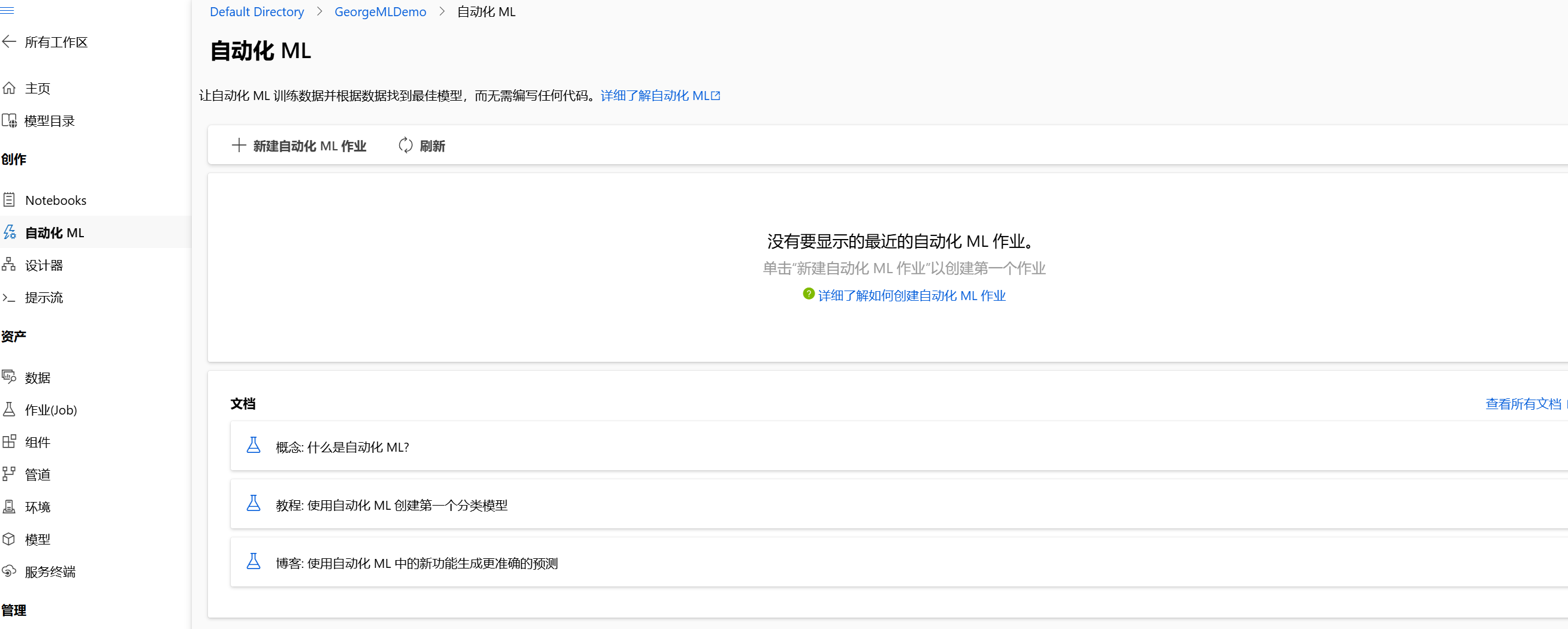 - 自动化 ML:如果你希望快速得到一个模型,可以使用"自动化 ML"功能。它会自动尝试多种模型和参数组合,找到最佳模型。