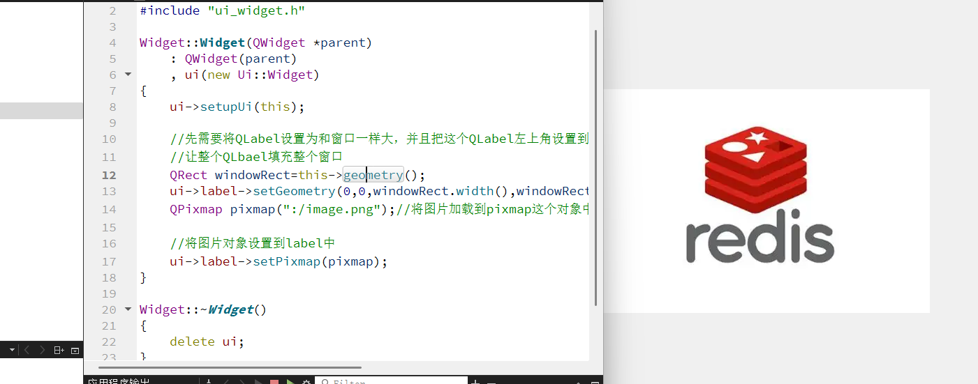 在构造函数中,通常需要初始化控件的尺寸。通过geometry()获取当前窗口的矩形区域,并将QLabel设置为填充整个窗口。这里涉及到Qt的坐标系统,(0,0)代表父窗口的客户区左上角。