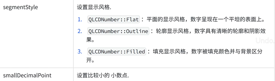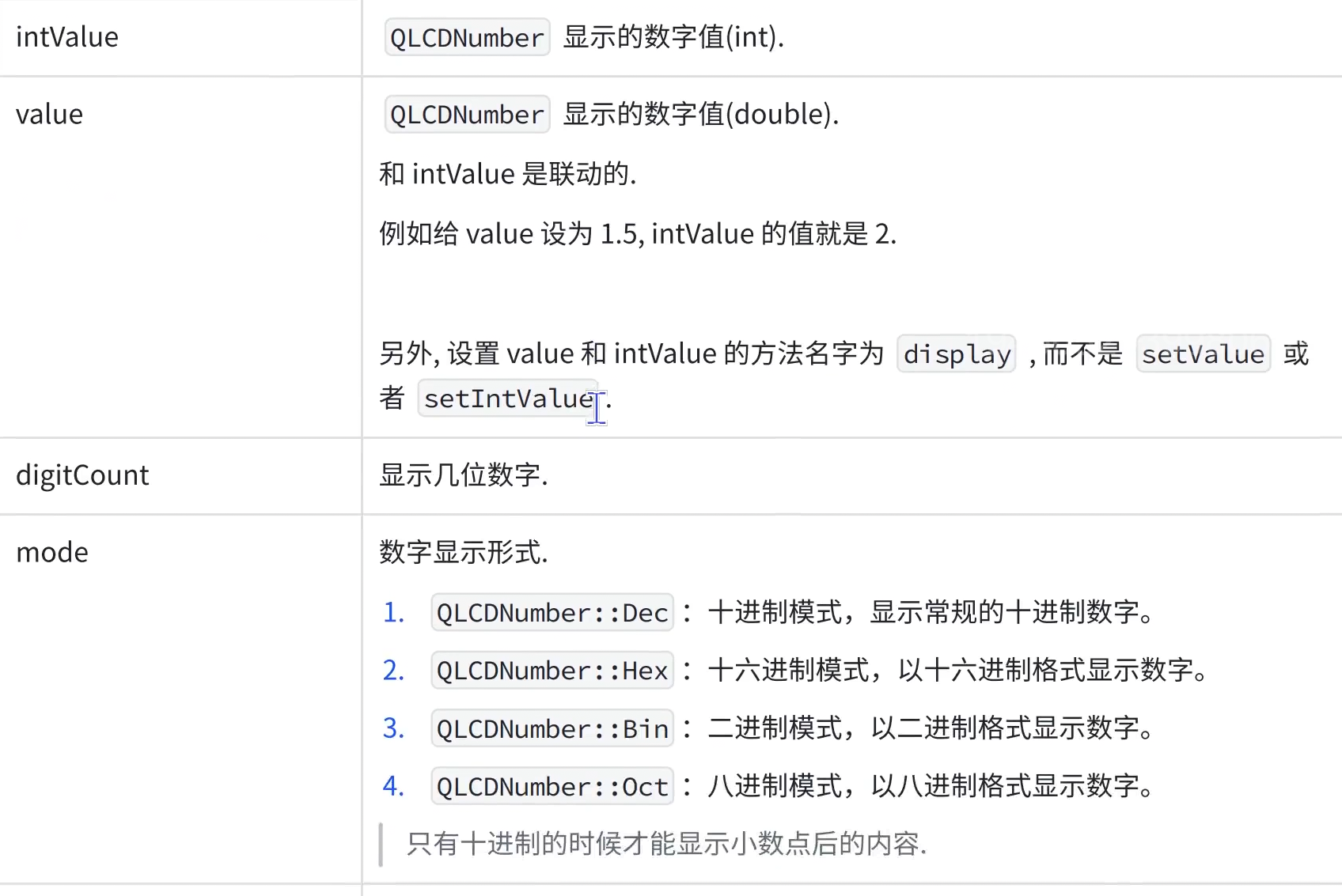 QLCDNumber模仿了经典的7段数码管显示风格,常用于计时器、计数器等场景。