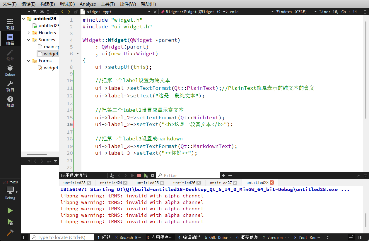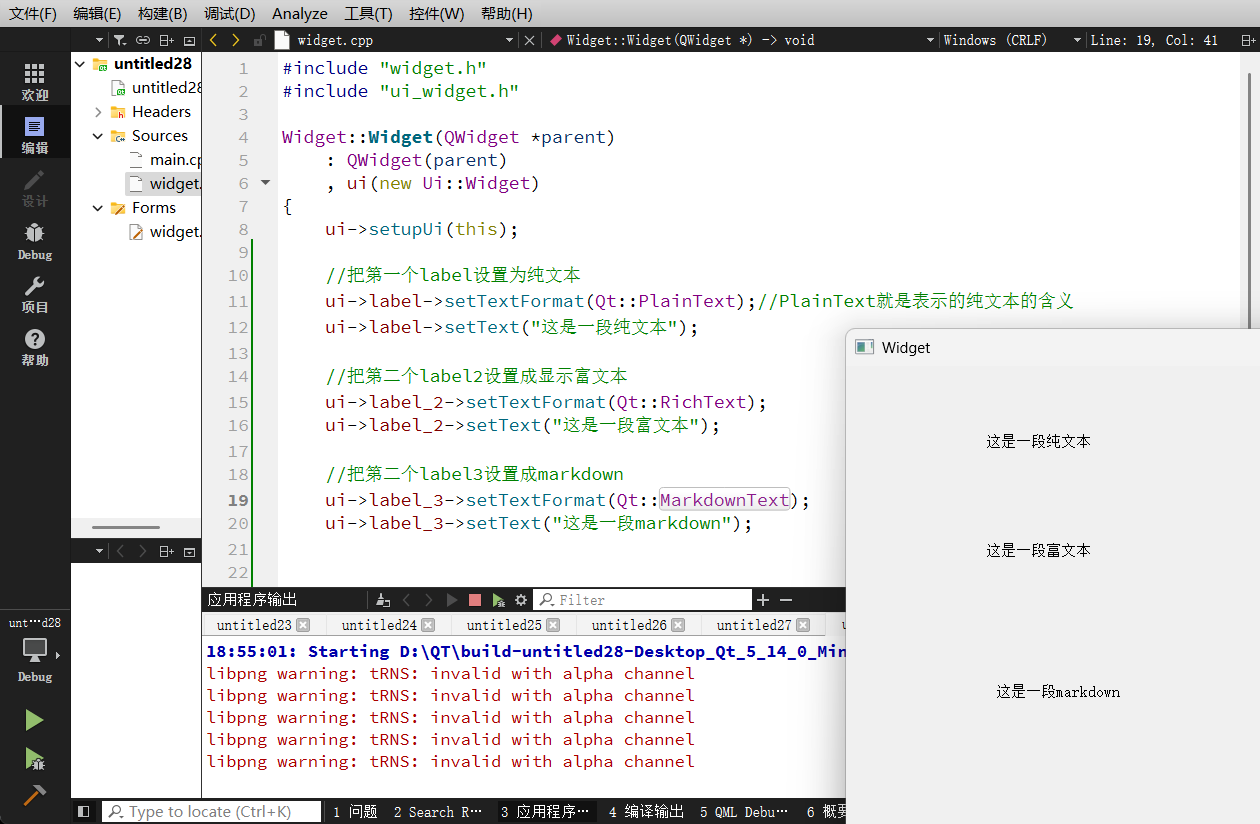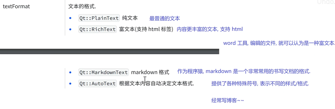 对于第三个Label,设置为Qt::MarkdownText,这是近年来流行的轻量级标记语言。
