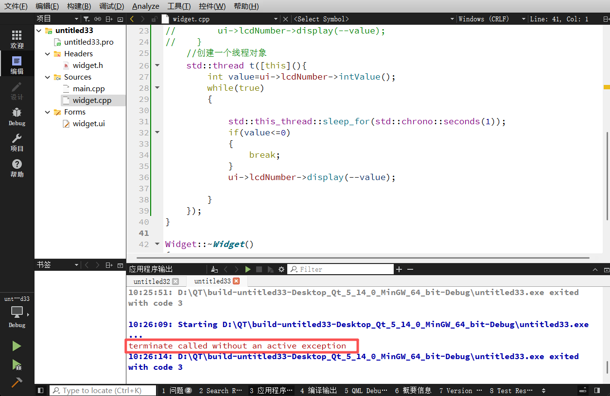 这是因为Qt(以及大多数GUI框架)都规定:GUI控件只能在创建它的线程(通常是主线程)中被访问和修改 。子线程直接调用ui->lcdNumber->display破坏了GUI系统的线程安全性,可能导致竞态条件、内存破坏或渲染冲突。