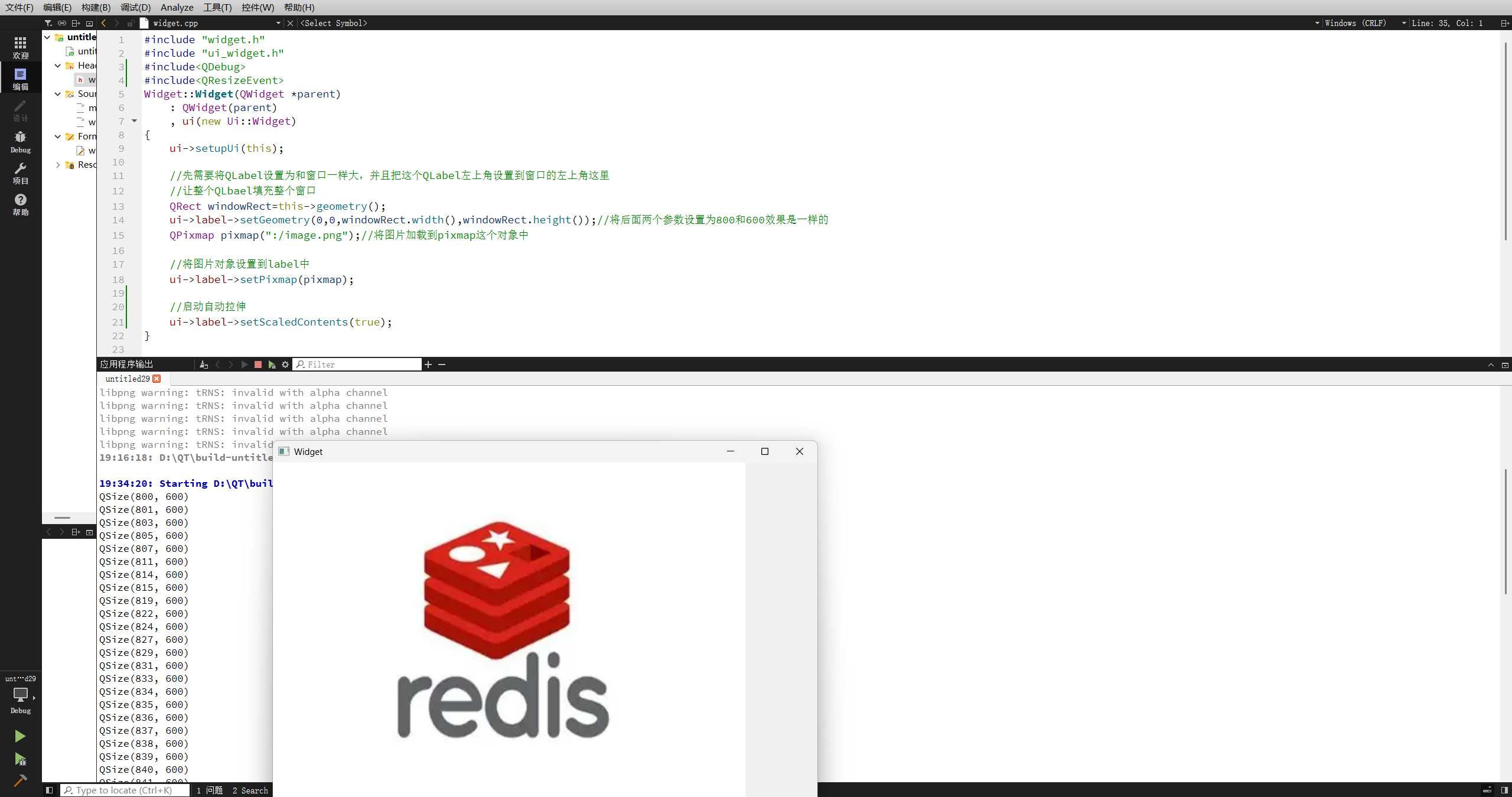 运行后会发现一个问题:虽然QLabel的大小被设置为了窗口大小,但内部的图片依然保持原始分辨率,并未填充满整个控件区域。为了解决这个问题,QLabel提供了一个关键属性scaledContents。