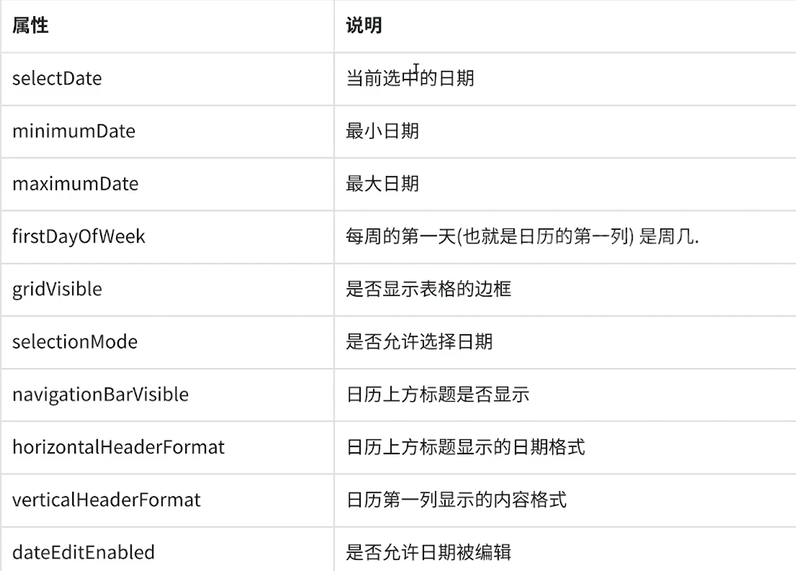 QCalendarWidget提供了一个完整的日历视图,允许用户通过鼠标交互选择日期。