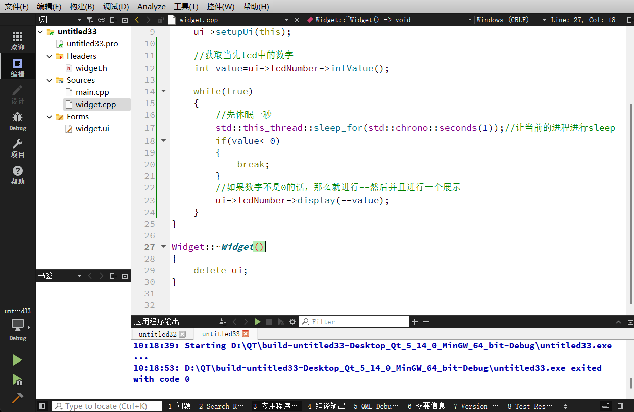 槽函数handle负责具体的业务逻辑:读取当前值,递减,并更新显示。