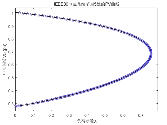 电力系统连续潮流计算/ Matlab编程 1.绘制电力系统任意节点完整的PV曲线(PV curve),包含鼻点(Nose piont) 2.求取系统电压稳定极限(Voltage Stability limit)和潮流解的稳定裕度(Stability Margin) 3.电力系统鞍结分岔(Saddle Node Bifurcation)与病态潮流(ill-condition power flow) 可做任何系统的连续潮流,需要的加好友[送花][比心]