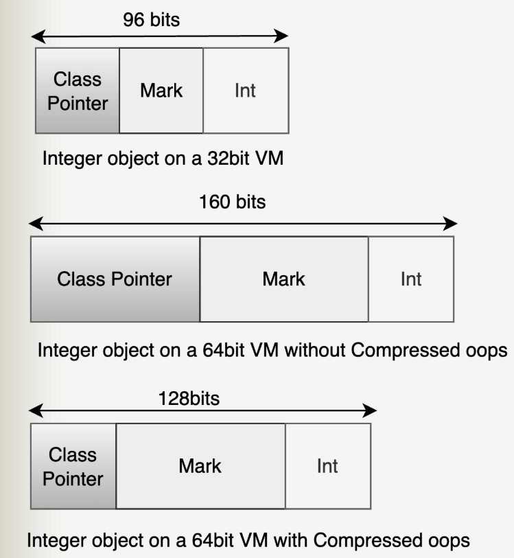 64 位 Java 虚拟机引入了压缩指针(Compressed Pointer)技术,将Java对象指针压缩为 32位。这样,对象头部中的Klass Pointer 也被压缩为 32 位,从而将对象头部的大小从 16 字节减小到 12 字节。