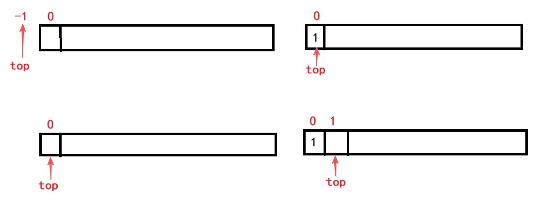 如果top初值为0,则top永远指向栈顶数据的下一个位置(该值与当前栈中数据个数相同)