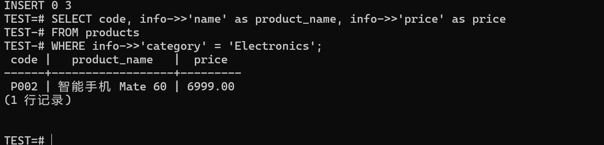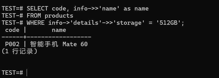 连接成功后,你会看到类似 TEST=# 的提示符。