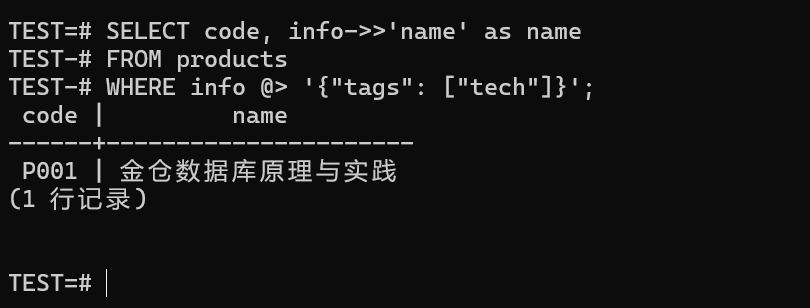 在金仓数据库里,这类场景不必像传统关系型数据库那样先画一堆复杂的 E-R 图。我们直接用 JSONB 类型来装半结构化的商品信息就行。JSONB 是二进制格式的 JSON,既能建索引,也能高效查询。