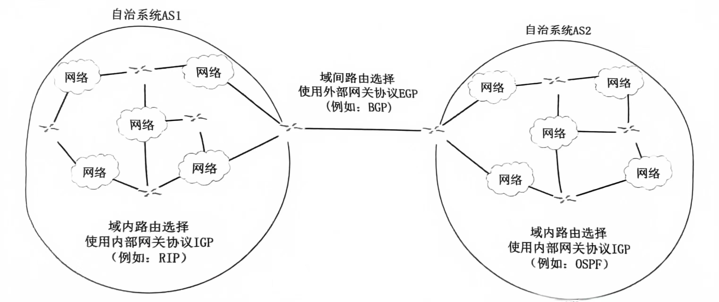 内部网关协议(IGP):AS内部的路由协议,如 RIP、OSPF。