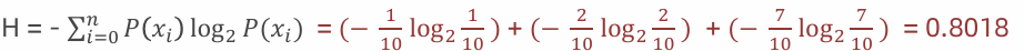 4:假如数据集有三个类别,分别占比为:{1/10, 2/10, 7/10},信息熵: