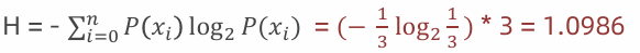 3:假如数据集有三个类别,分别占比为:{⅓, ⅓, ⅓},信息熵: