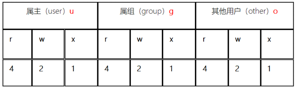 **答:**每一个权限都有一个对应的数字,r=4、w=2、x=1