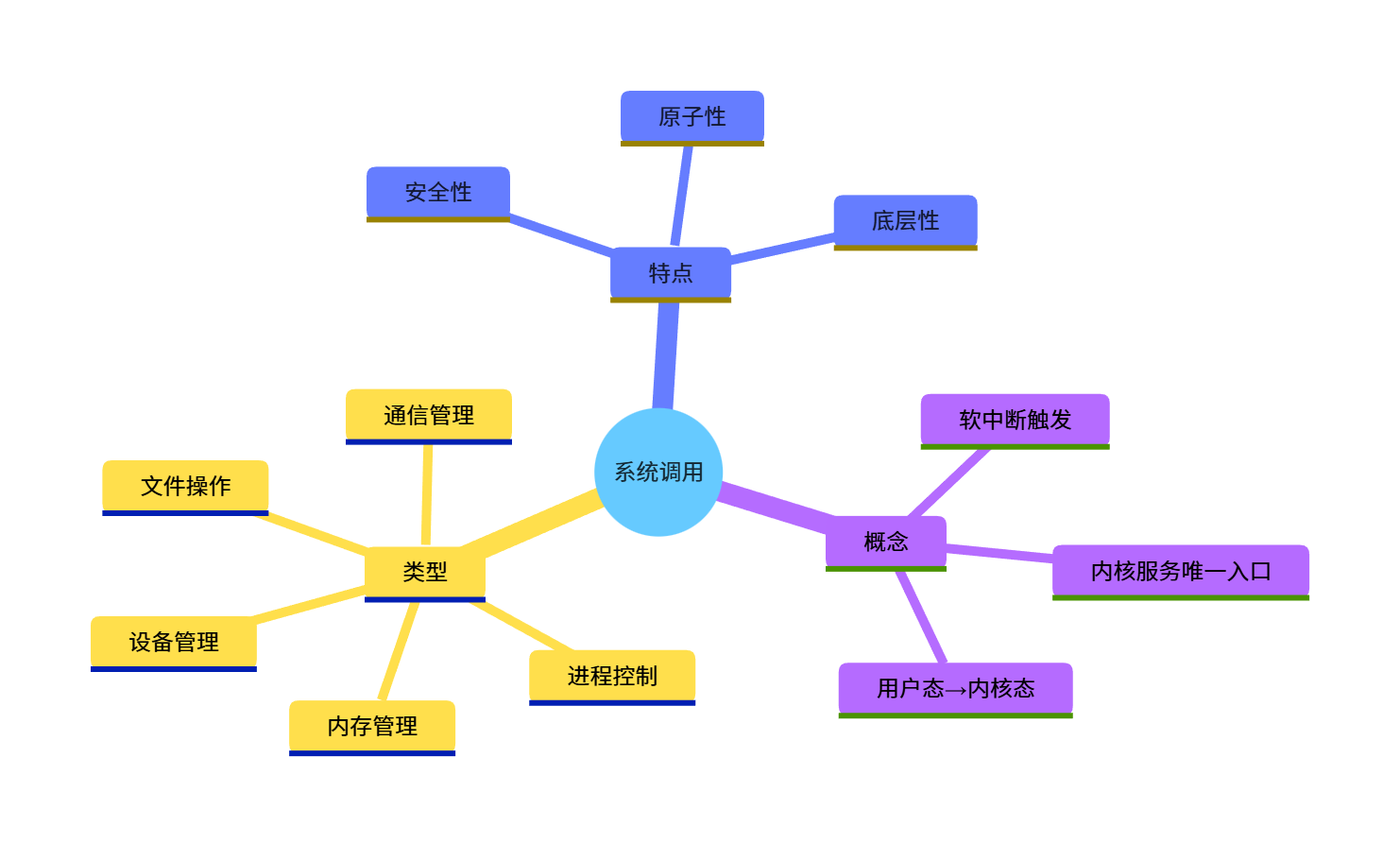 - 返回用户态:内核函数执行完成后,将结果返回给用户程序,切换回用户态。