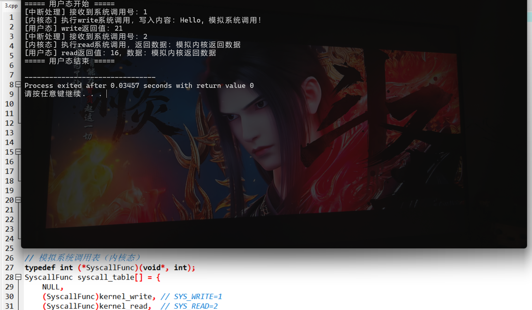 cout << "===== 用户态结束 =====" << endl;