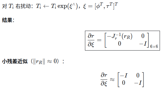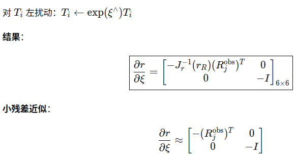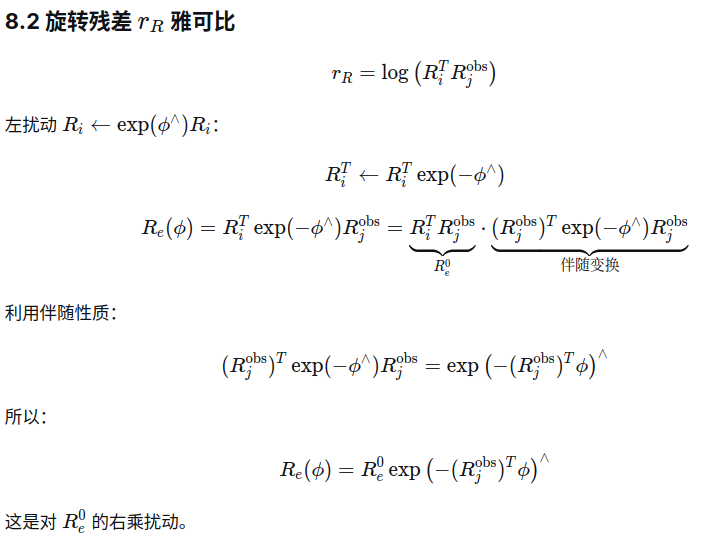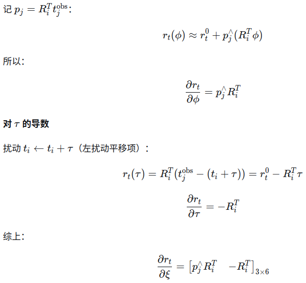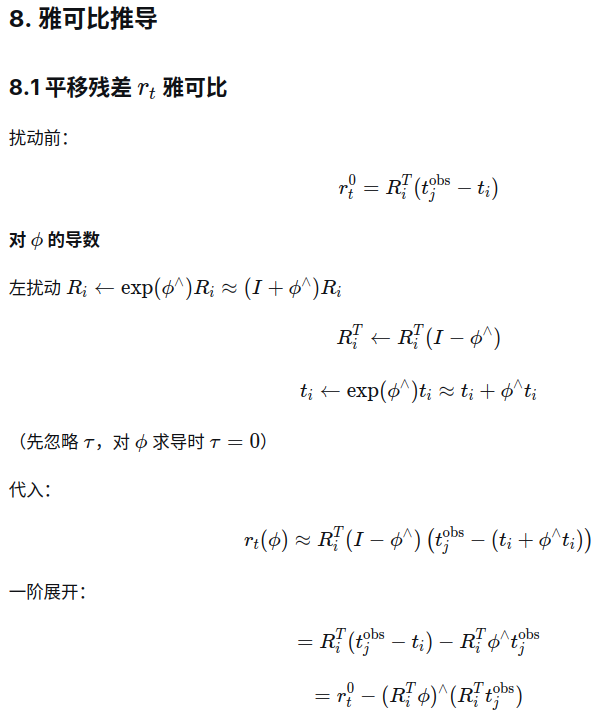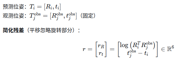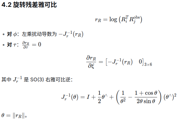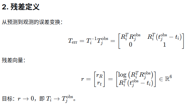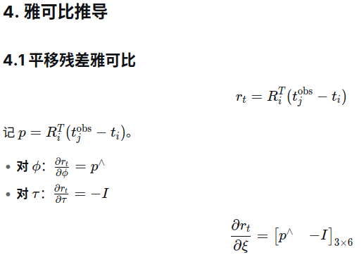 注意:这里观测减预测,实际我个人比较喜欢预测减观测,这样推出来的雅克比可以忽略负号,下面推导观测减预测,多了一个负号