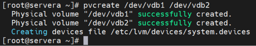 sudo vgcreate vg01 /dev/vdb1 /dve/vdb2