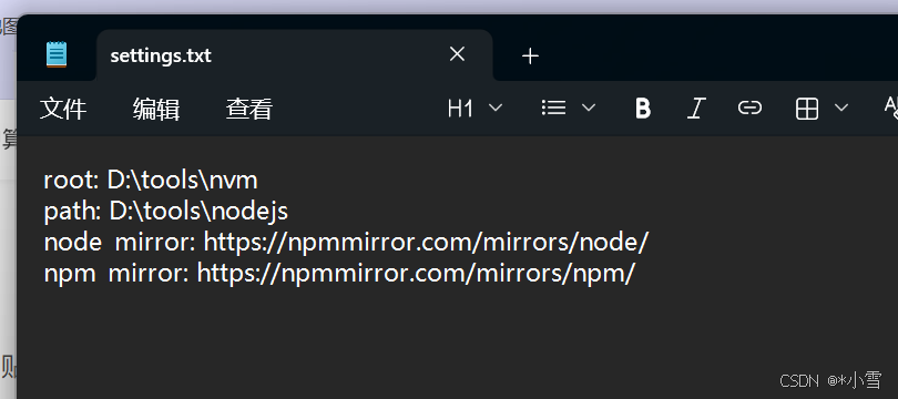 11.复制粘贴以下代码,如图所示。保存完成nvm源修改