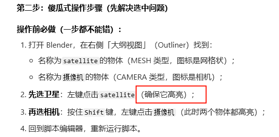 error_msg = "❌ 未找到卫星!请先选中任意MESH类型物体"