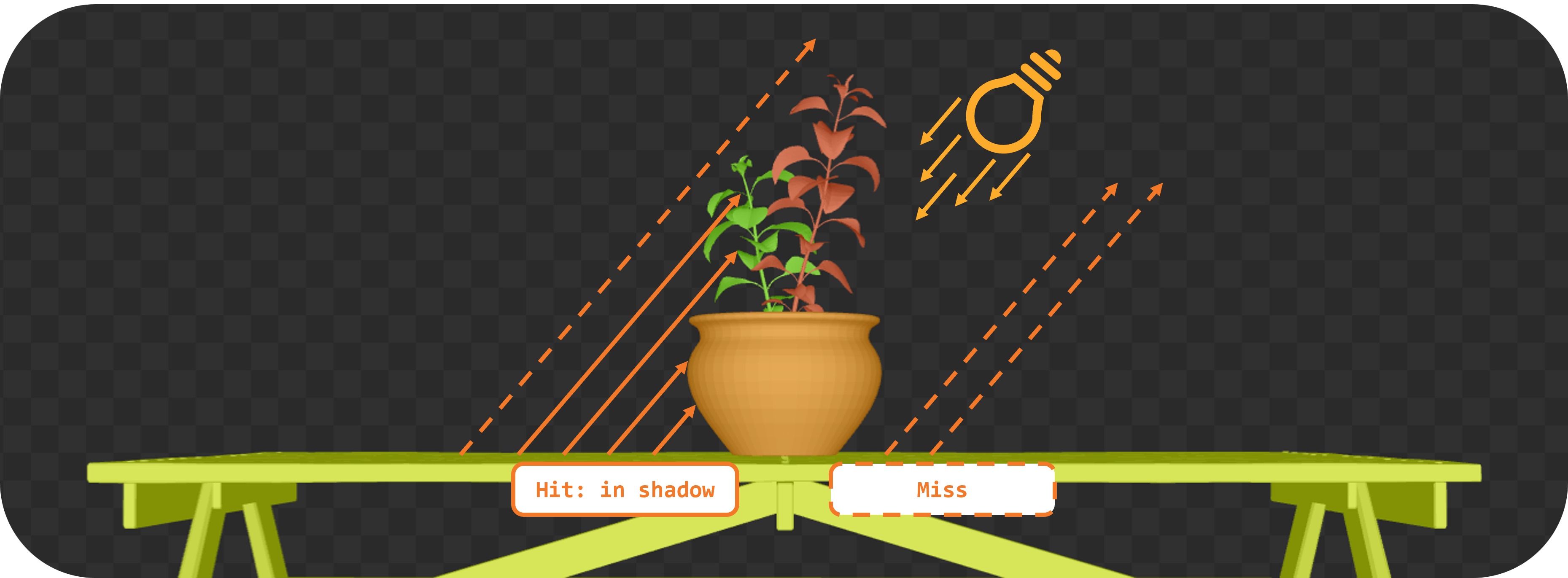 sq.TraceRayInline(accelerationStructure, rayFlags, 0xFF, shadowRayDesc);