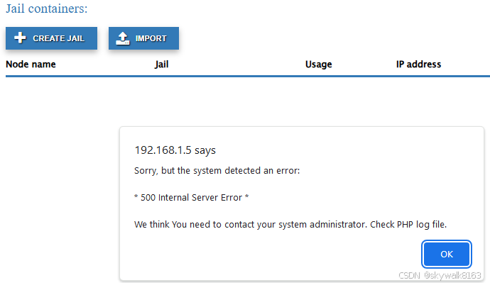 thrown in /usr/local/www/clonos/public/pages/jailscontainers/a.json.php on line 13" while reading response header from upstream, client: 192.168.1.2, server: _, request: "POST /json.php HTTP/1.1", upstream: "fastcgi://unix:/tmp/php-fpm.sock:", host: "192.168.1.5", referrer: "http://192.168.1.5/jailscontainers/"
