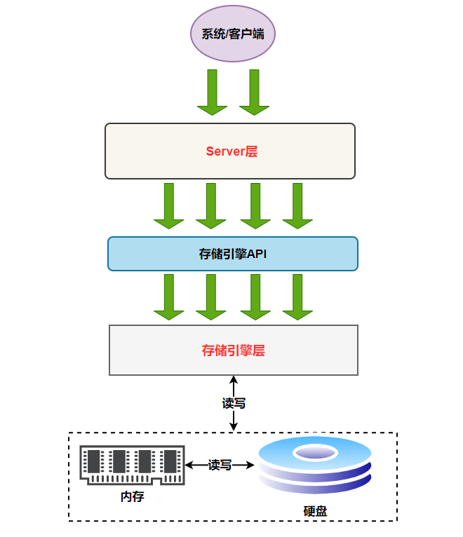 所以存储引擎会按照内部逻辑与内存、硬盘交互。
