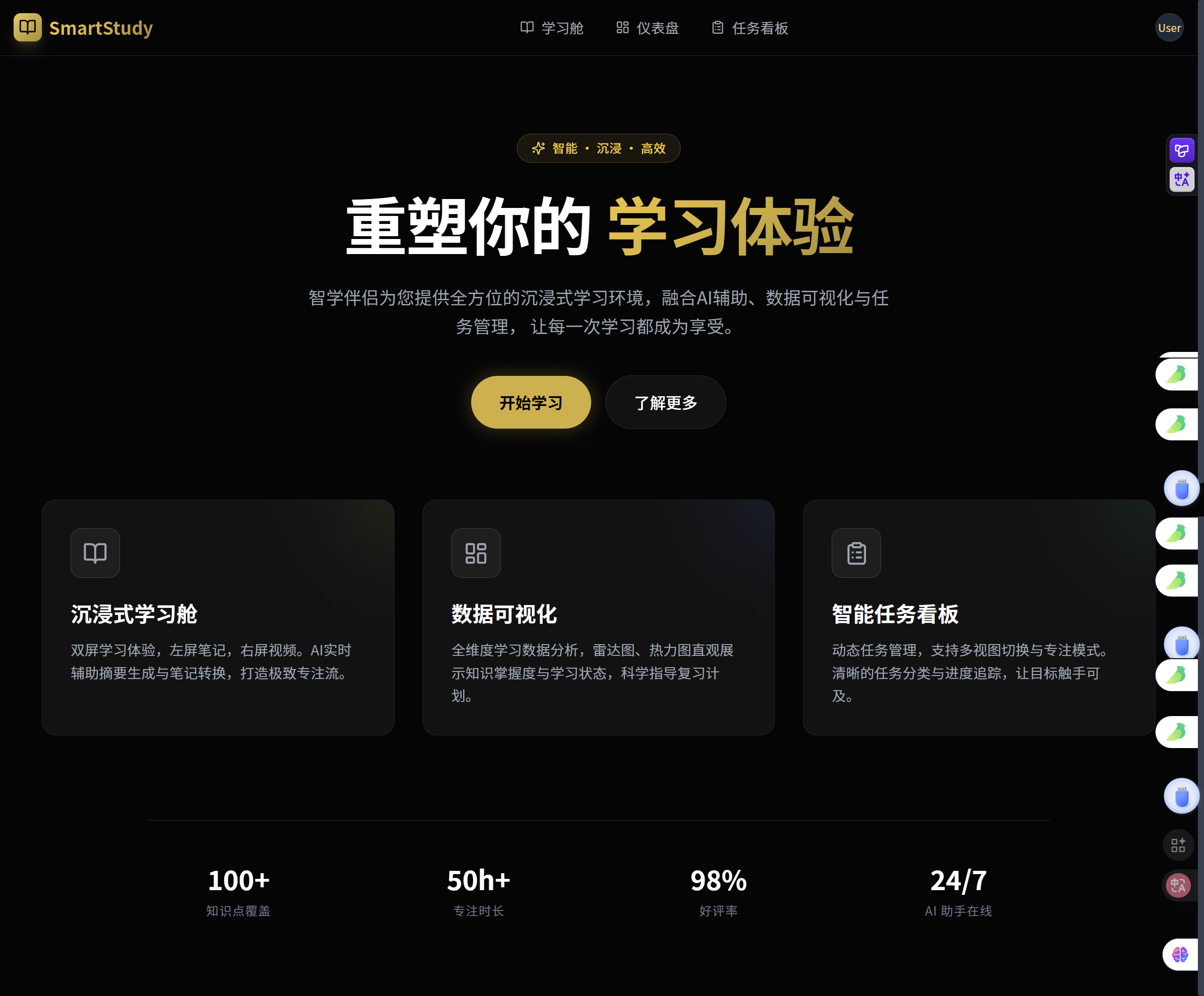 智学伴侣 是一款专注于沉浸式学习体验的智能学习平台,旨在通过视频学习、笔记记录和数据可视化等功能,帮助学生提升学习效率和专注度。