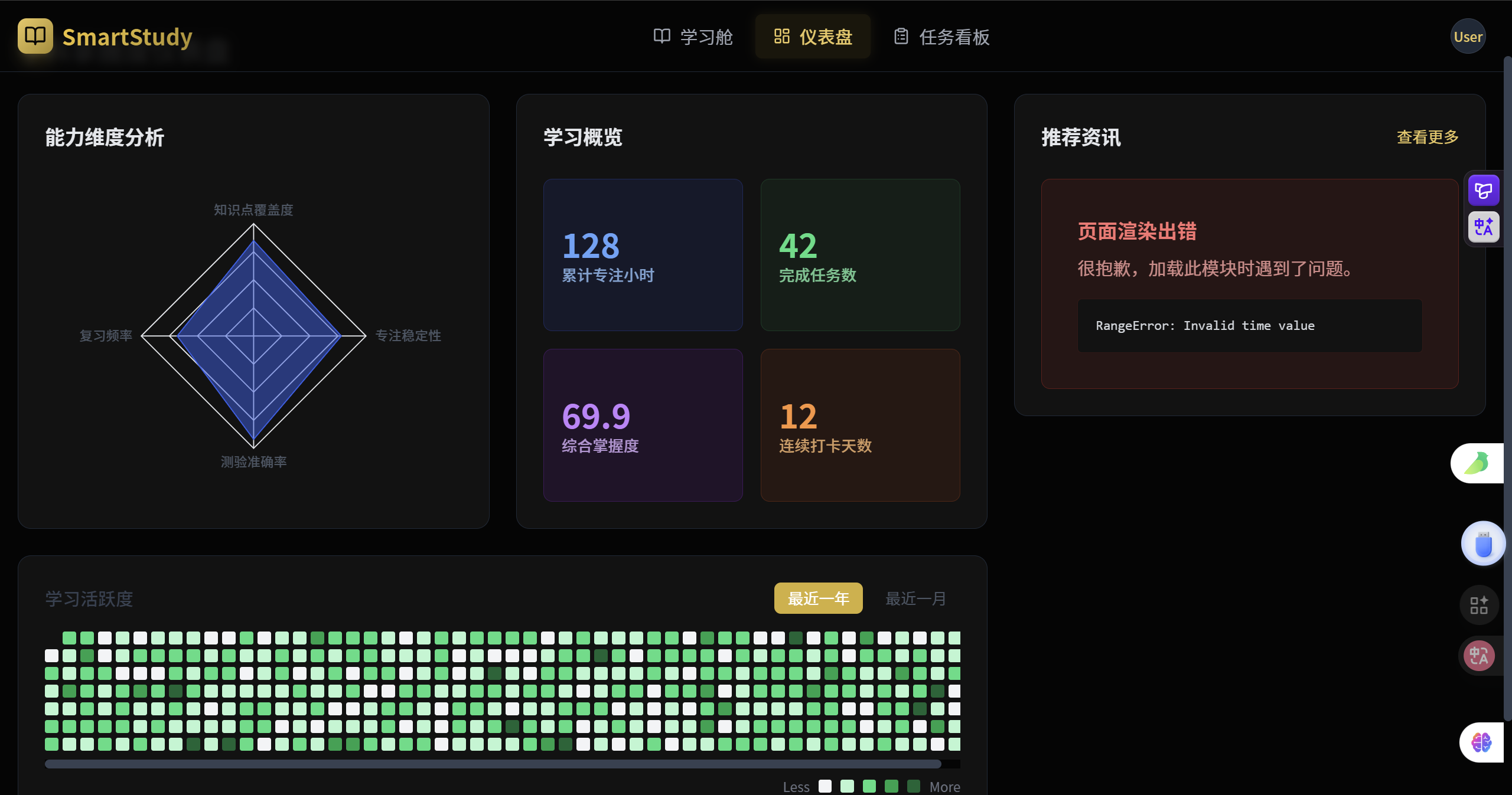 - 学情热力图:仿 GitHub 贡献墙风格,直观展示每日学习活跃度。