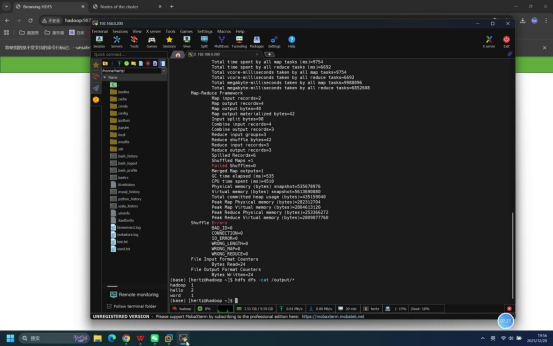 操作说明:在终端中执行HDFS命令,查看/output目录下的任务结果文件内容。