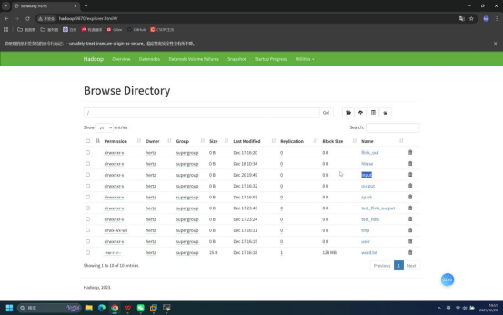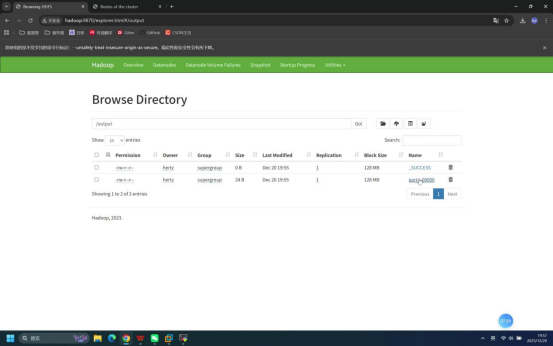 预期结果:浏览器HDFS根路径下可看到/output目录。
