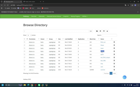 步骤7:浏览器访问HDFS WebUI验证目录