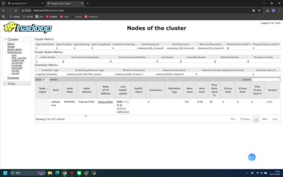 操作说明:打开本地浏览器,输入YARN WebUI访问地址,查看YARN服务状态。