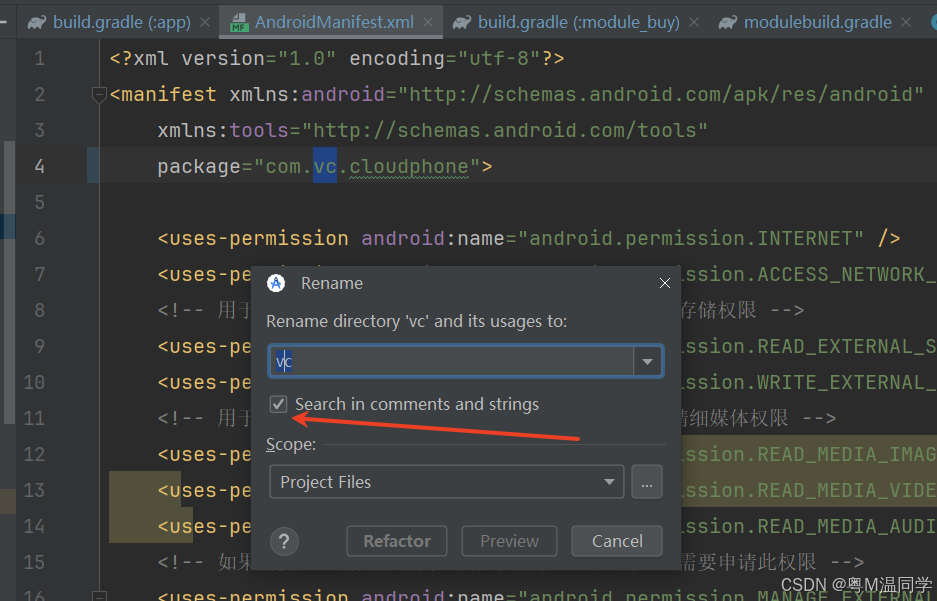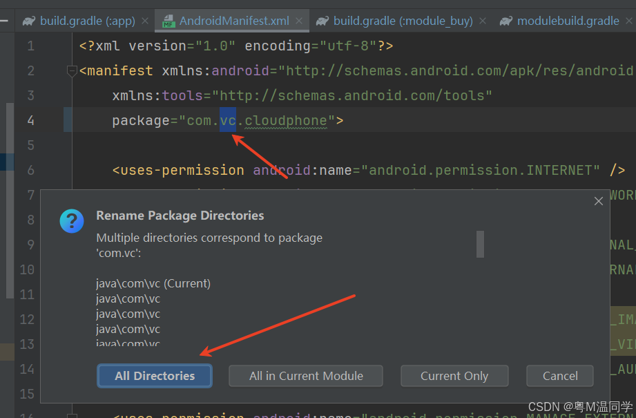 需要快速修改module目录中的包名路径和module下 build.gradle中namespace。