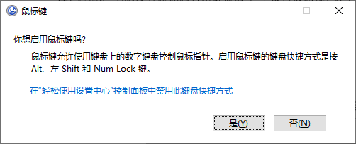 - 屏幕会弹出提示对话框,询问是否启用鼠标键,按下 Enter 确认。