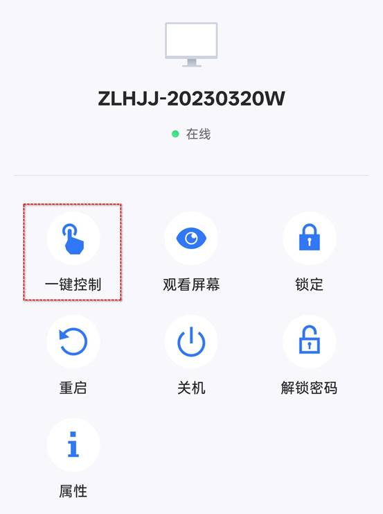 - 在手机 远程看看的操作列表中,找到要操作的电脑,点击并选择"一键控制";